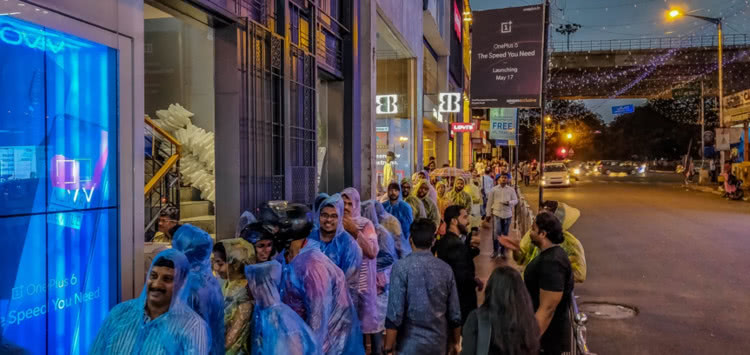 在印度班加羅爾,出現(xiàn)千人冒雨排隊(duì)購機(jī)的情景